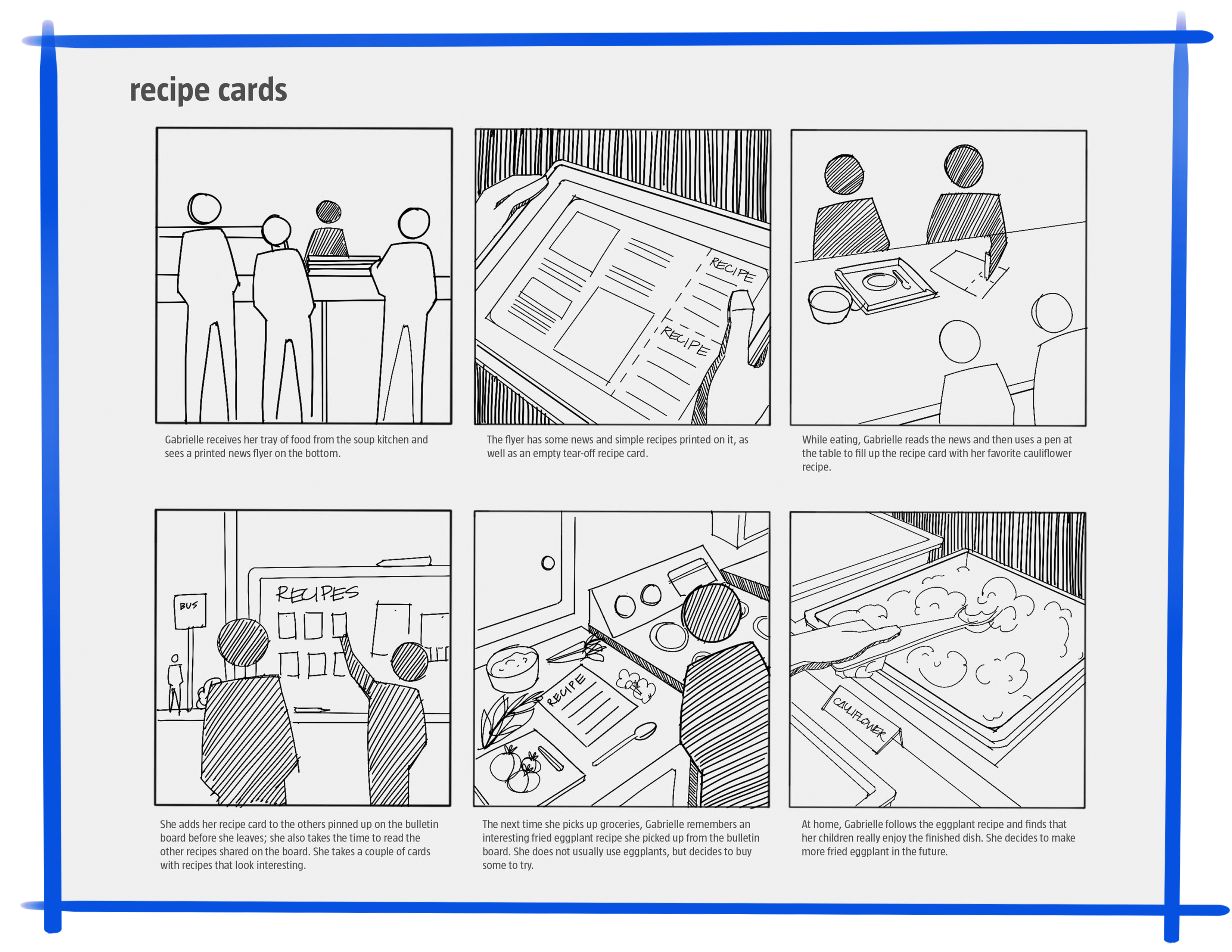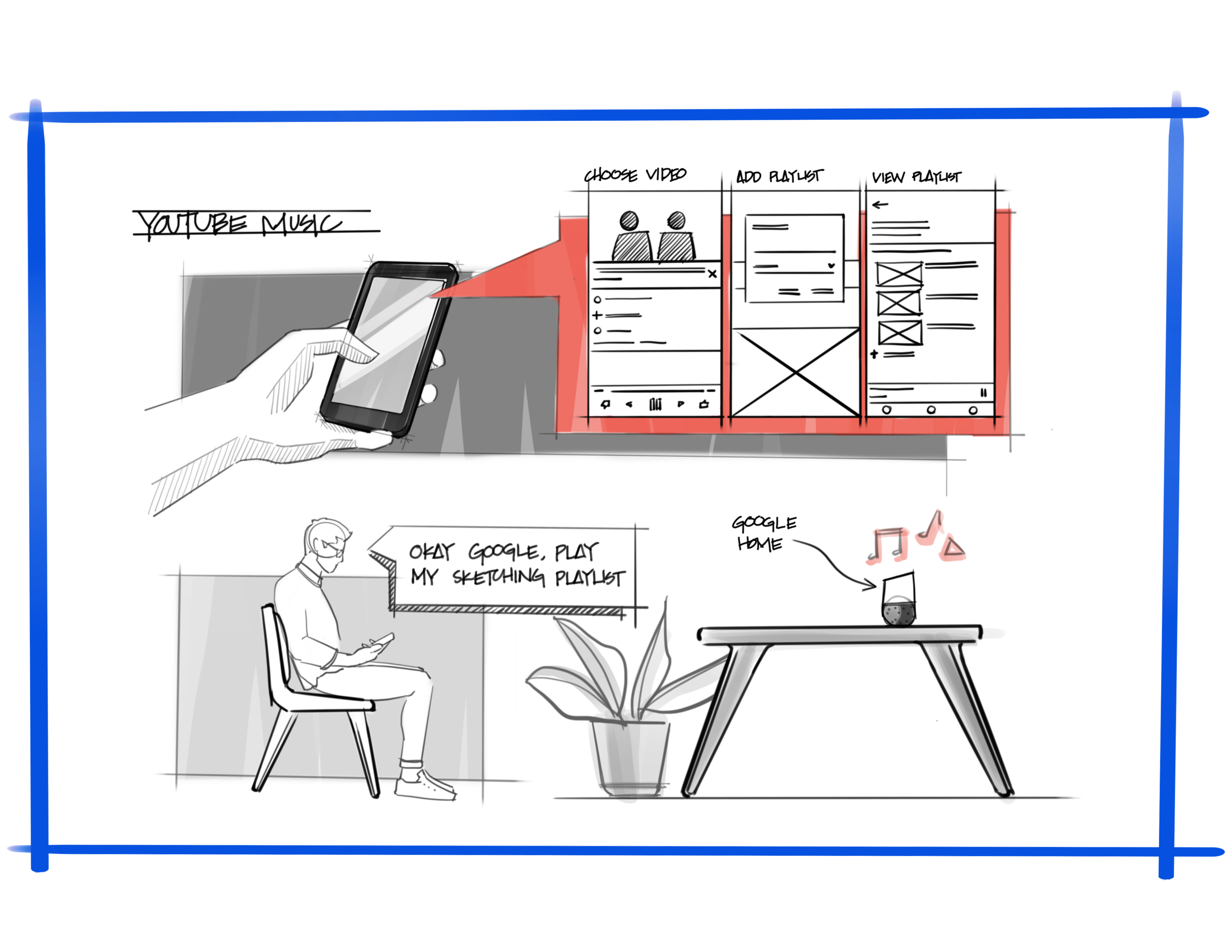 Sketching scenarios are helpful when you need to communicate a large or abstract idea. This is a way to visualize beyond reality and mock-up concepts in a cheap, fast, and effective manner.